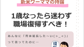 ワーママ 【ワーママ】第89話 1歳で職場復帰について こんばんは、共働き年収800万夫婦の妻みほやんです。 今日はワーママというテーマで、昨年4月から職場復帰して思った事を話していきたいと思います。 ずばり、 下の子は4月生まれでちょうど1歳になったタイミングでの... 2026.01.24 ワーママ